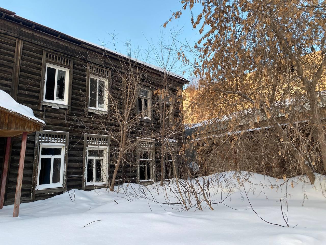 В Новосибирске началась подготовка к сносу одного из старейших зданий города — дома на улице Коммунистической, 3а. Двухэтажное строение 1917 года постройки, расположенное рядом с проездом Виктора Ващука, уже расселено. Сейчас его окна выбиты, стены исписаны граффити, а на крыше скопился навес из снега.