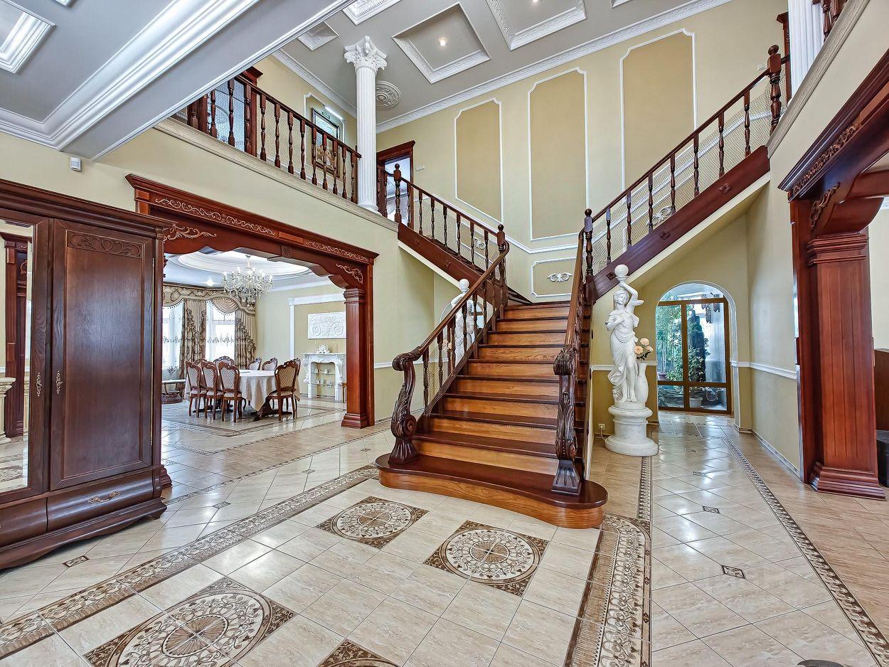 Недвижимость называют родовым гнездом. Основное здание включает четыре уровня. Парадный холл на первом этаже украшает лестница из дальневосточного ясеня, а также несколько статуй.