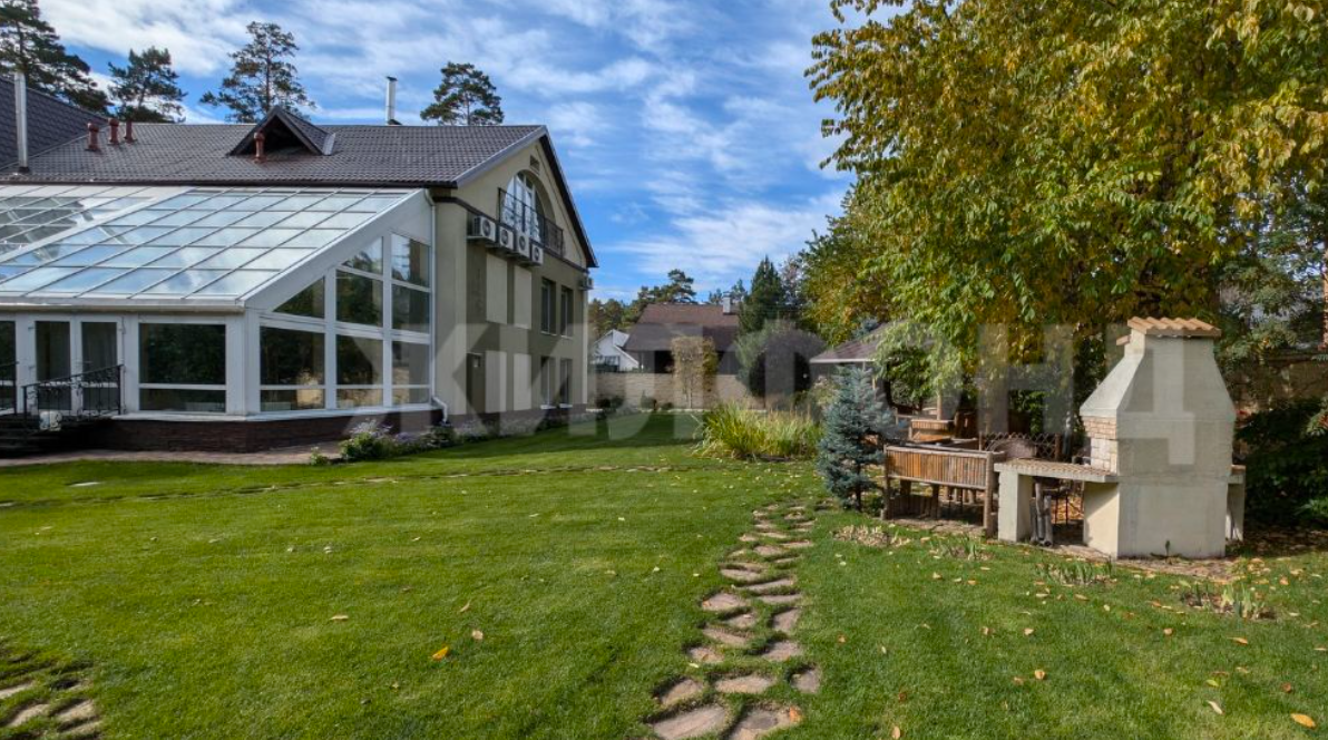 Как указано в описании, для строительства здания использовались высококачественные материалы: классическая кирпичная кладка, железобетонные перекрытия, мрамор и натуральный камень. Из совмещённого помещения кухни и гостиной предусмотрен выход в зимний сад.
