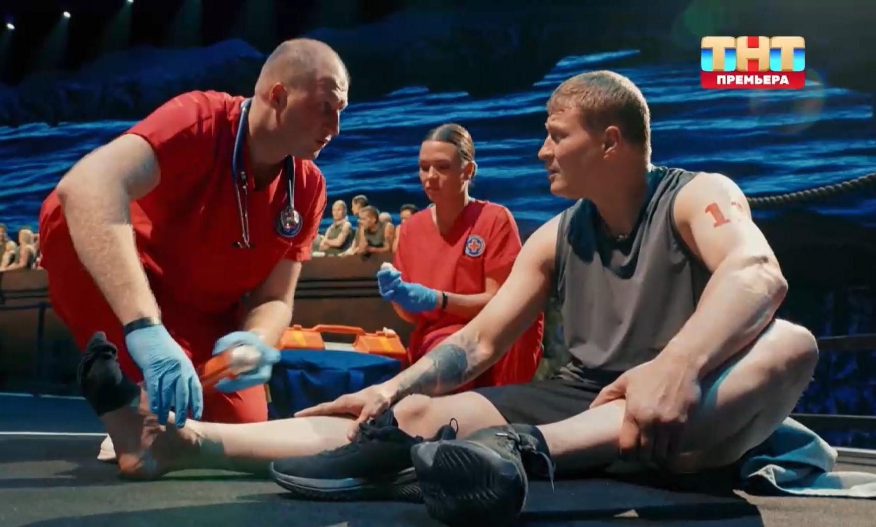 Легендарный боксер Александр Поветкин, успешно выполнив задание, также повредил голеностоп и упал на мат, после чего был вынужден прекратить борьбу.