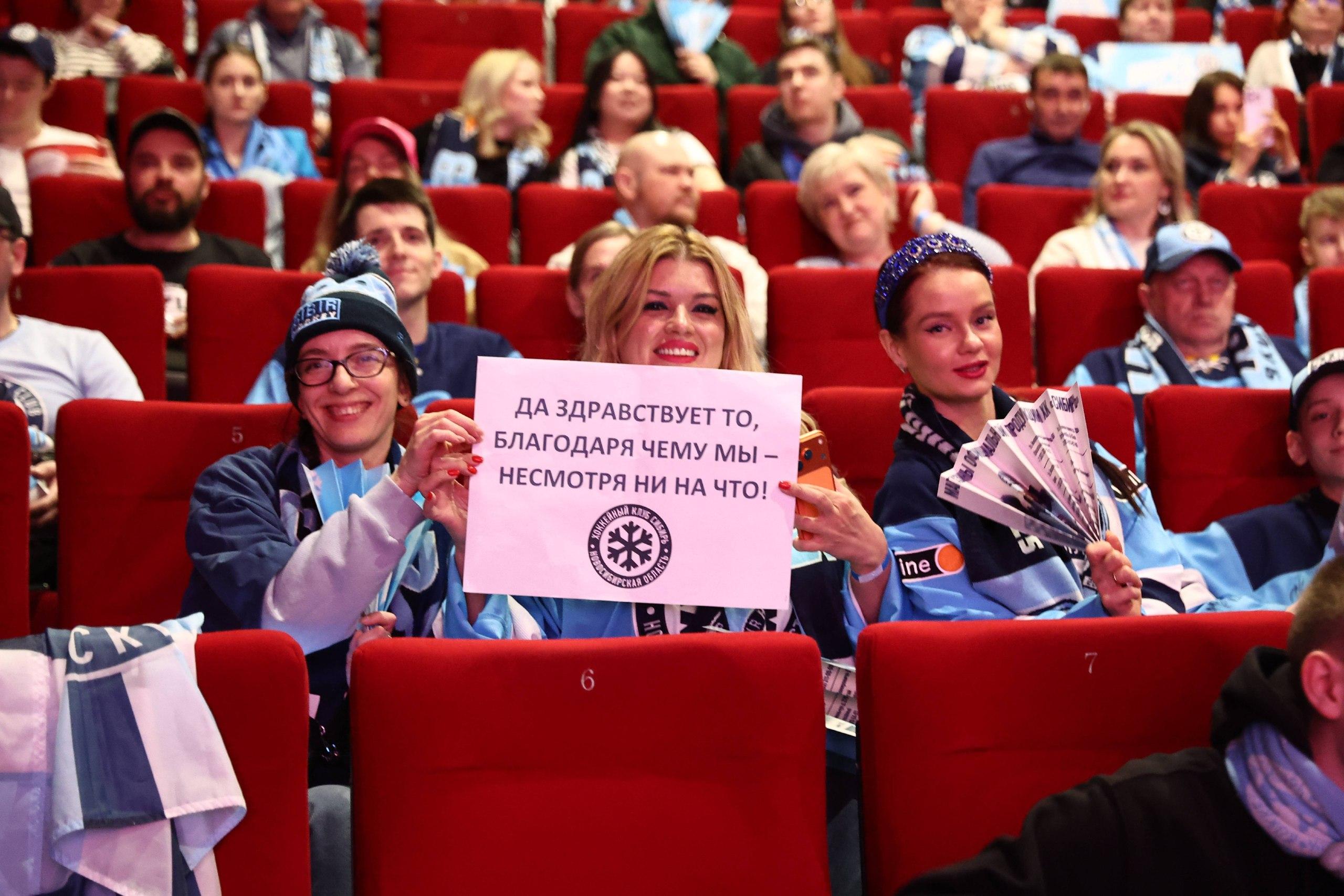 24 марта в кинотеатре «Победа» в Новосибирске собралось свыше тысячи местных болельщиков для просмотра прямой трансляции матча плей-офф КХЛ между «Сибирью» и «Металлургом». Команды борются за главный трофей лиги — Кубок Гагарина.