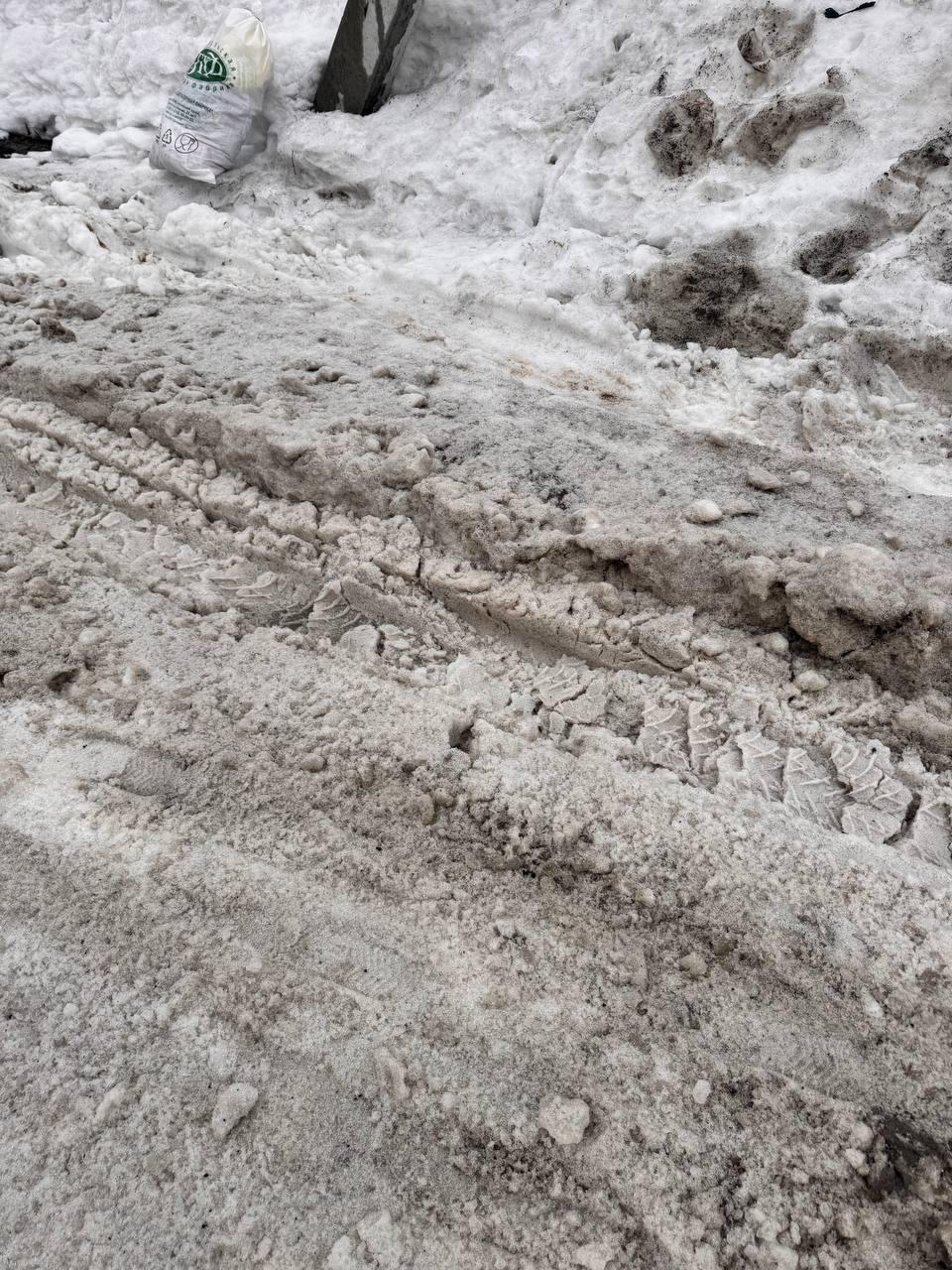На улице Толстого в Октябрьском районе образовалась глубокая снежная колея. По словам местной жительницы, это вынуждает людей оставлять транспорт далеко от дома: «Люди даже к своим домам проехать не могут, приходится оставлять машину в начале улицы, а потом топать по этим колеям. Хоть бы ноги не переломать».