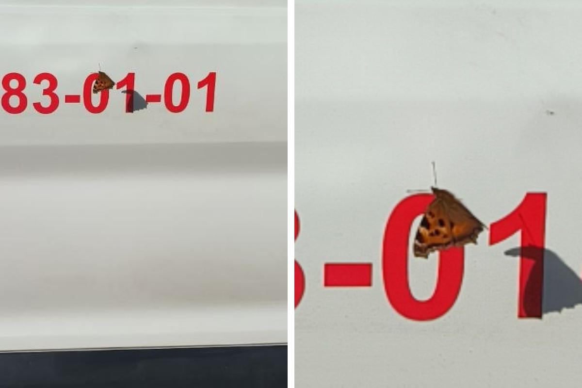 Снимок насекомого сделала местная жительница. «Ей очень понравилась эта машина. Скорее всего яркими буквами», — предположила женщина.