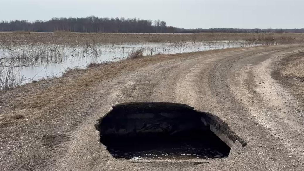 В Новосибирской области из-за активного таяния снега и прохождения паводковых вод разрушен участок дороги, ведущей к поселку Волковский в Чулымском районе.