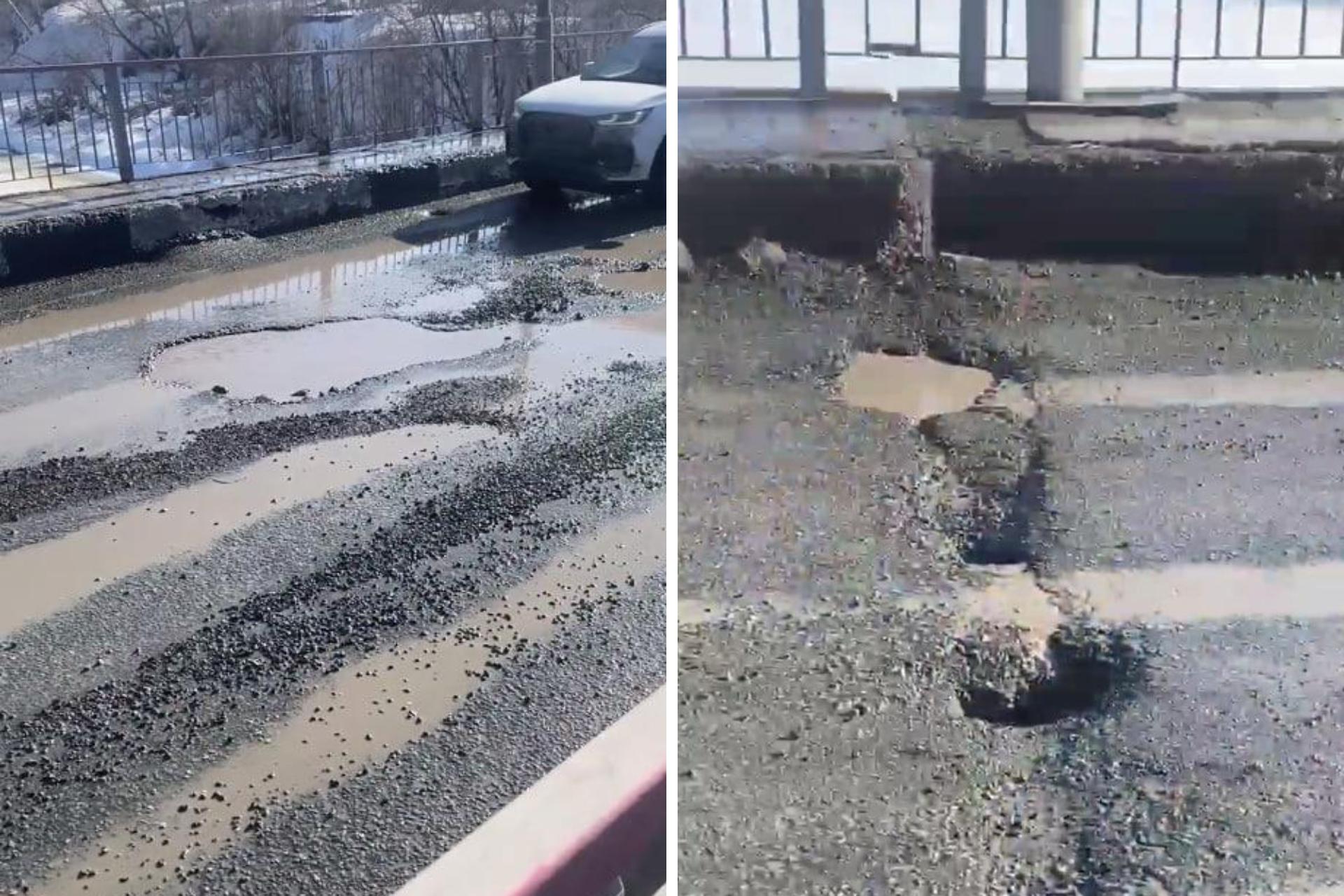 Мост через реку Иня, связывающий Первомайский район и село Новолуговое, активно разрушается. На проезжей части образовались глубокие ямы.