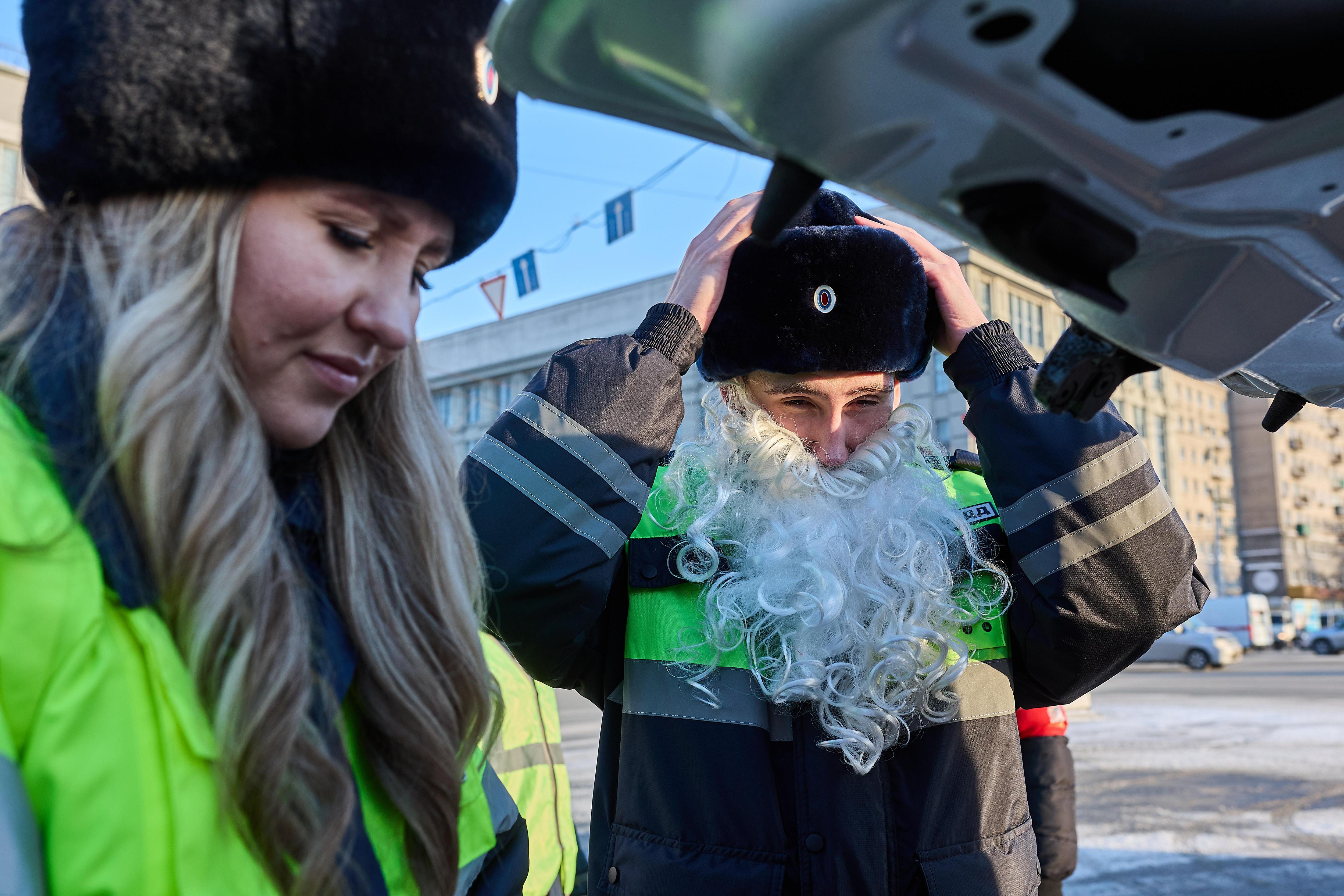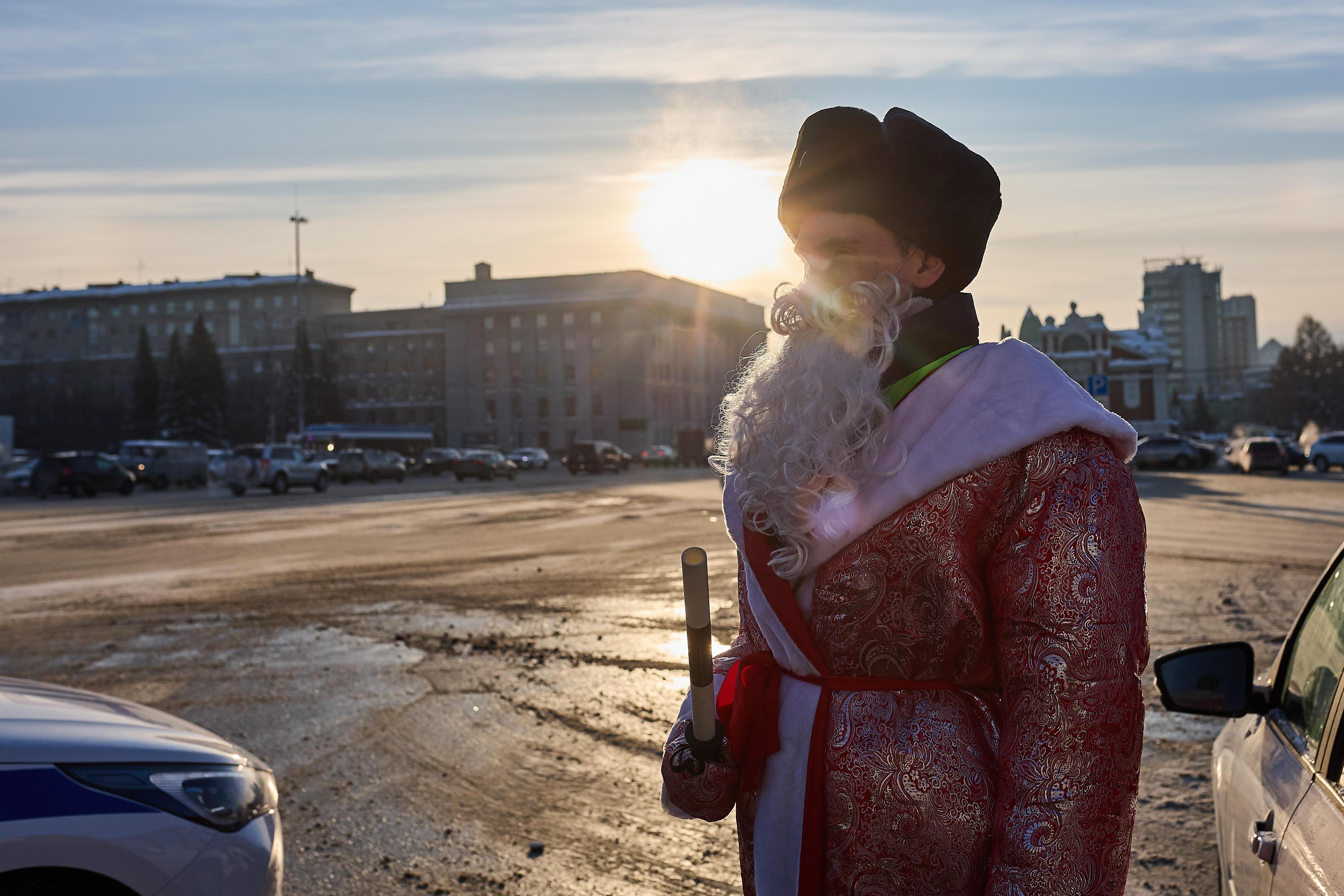 Дед Мороз поздравил новосибирских водителей с Новым годом