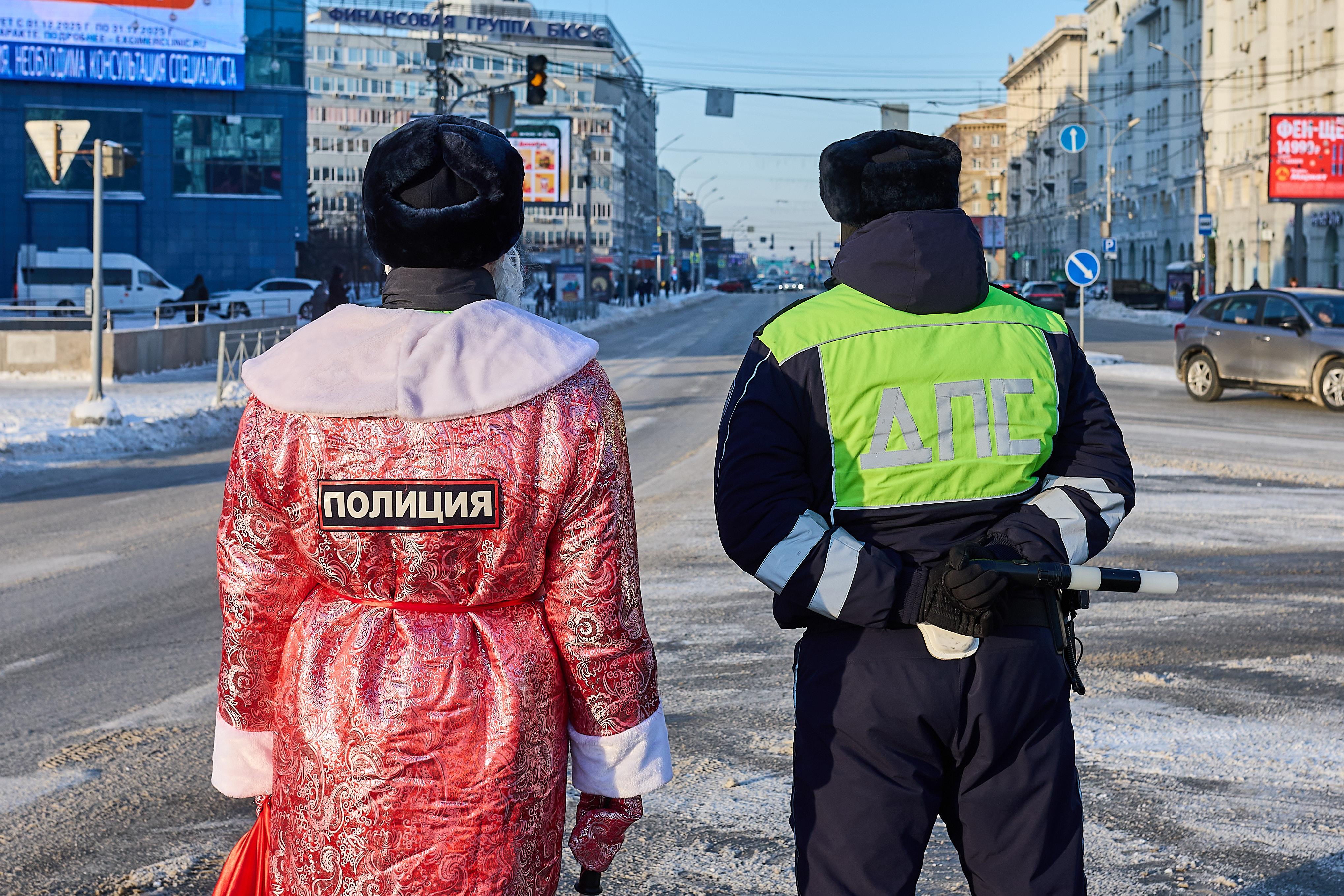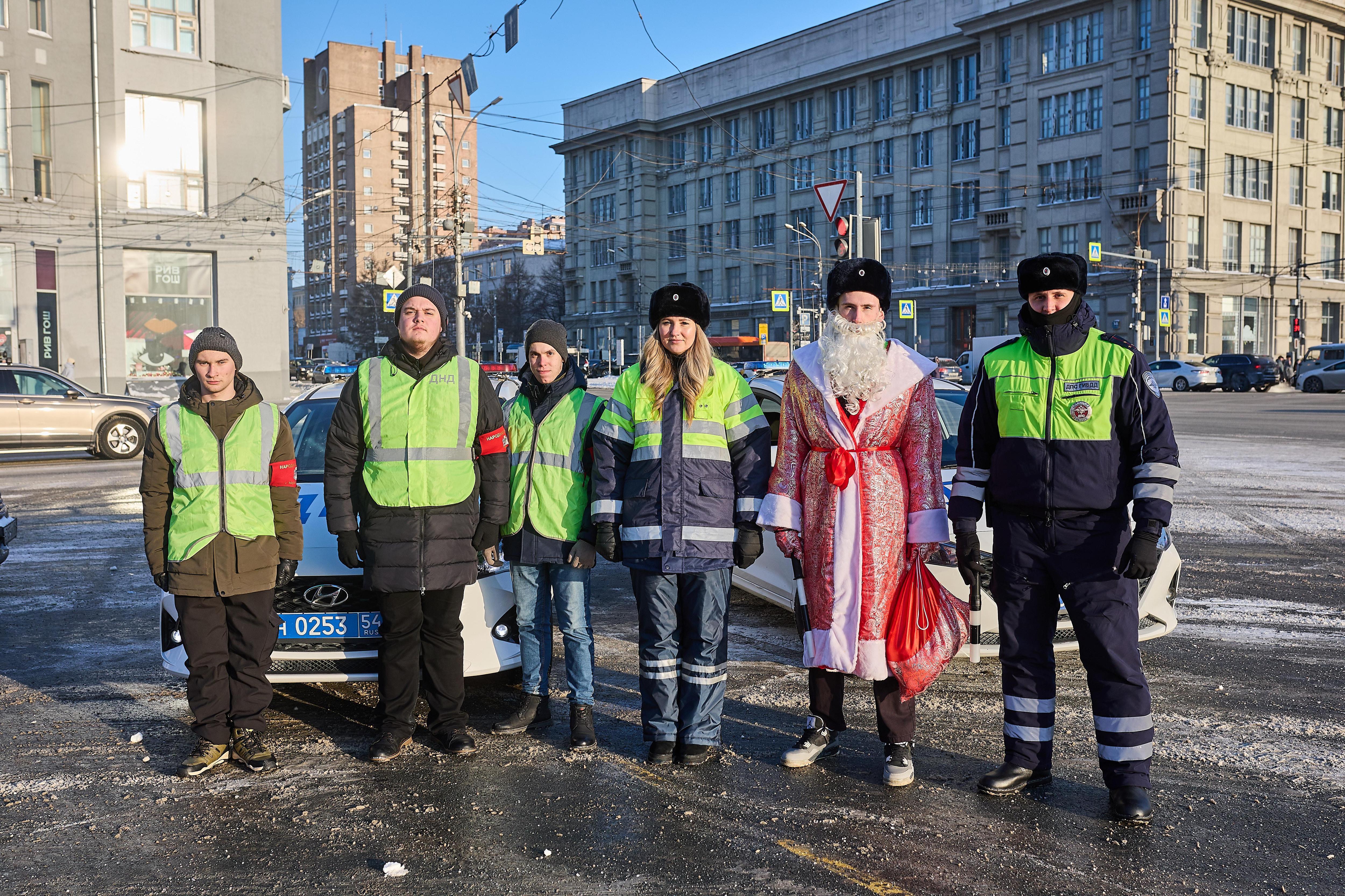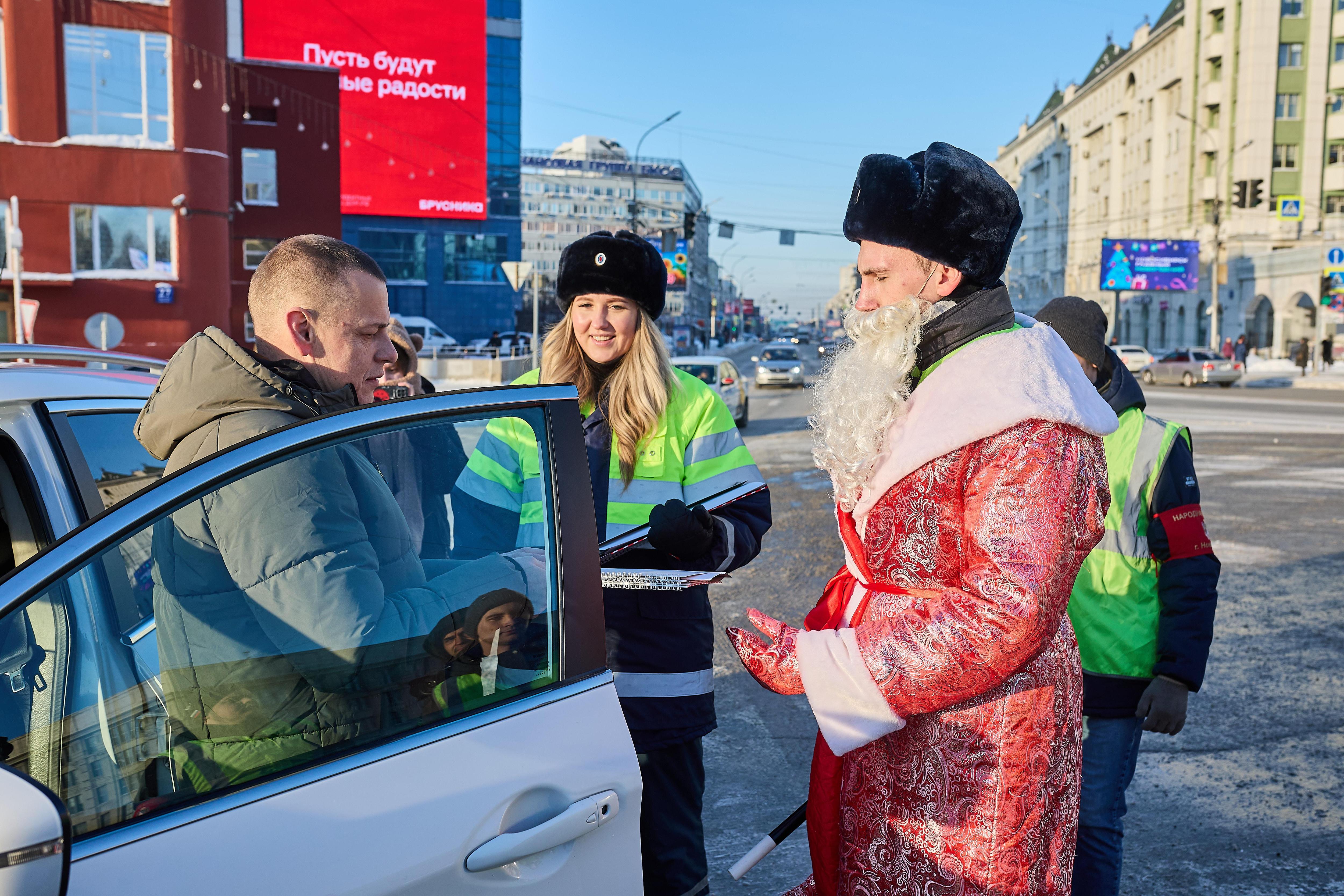 На площади Ленина в Новосибирске 29 декабря инспекторы ГИБДД провели праздничную акцию. Один из сотрудников нарядился Дедом Морозом, чтобы поздравить водителей с наступающим Новым годом. Автомобилистам, которых останавливали, вручали подарки и напоминали о важности соблюдения ПДД.
