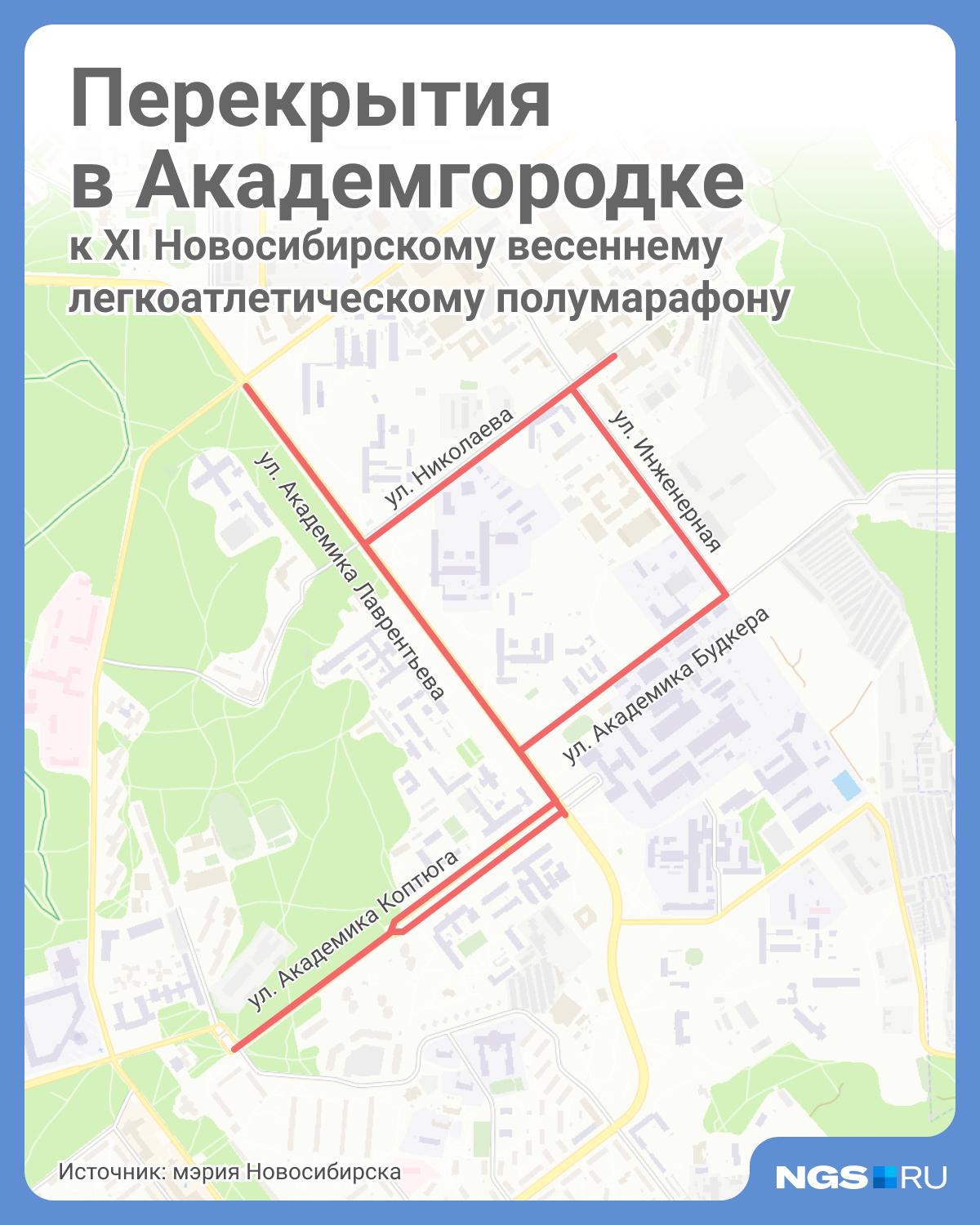 XI Новосибирский весенний легкоатлетический полумарафон пройдёт 19 апреля. На время мероприятия закроют для движения несколько участков автомобильных дорог в Академгородке.