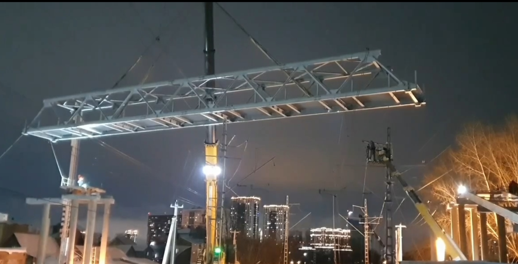 Монтаж пролёта пешеходного моста в Новосибирске выполнили в ночь на 7 декабря. Видеозапись этого процесса мэр города Максим Кудрявцев разместил в своём телеграм-канале.