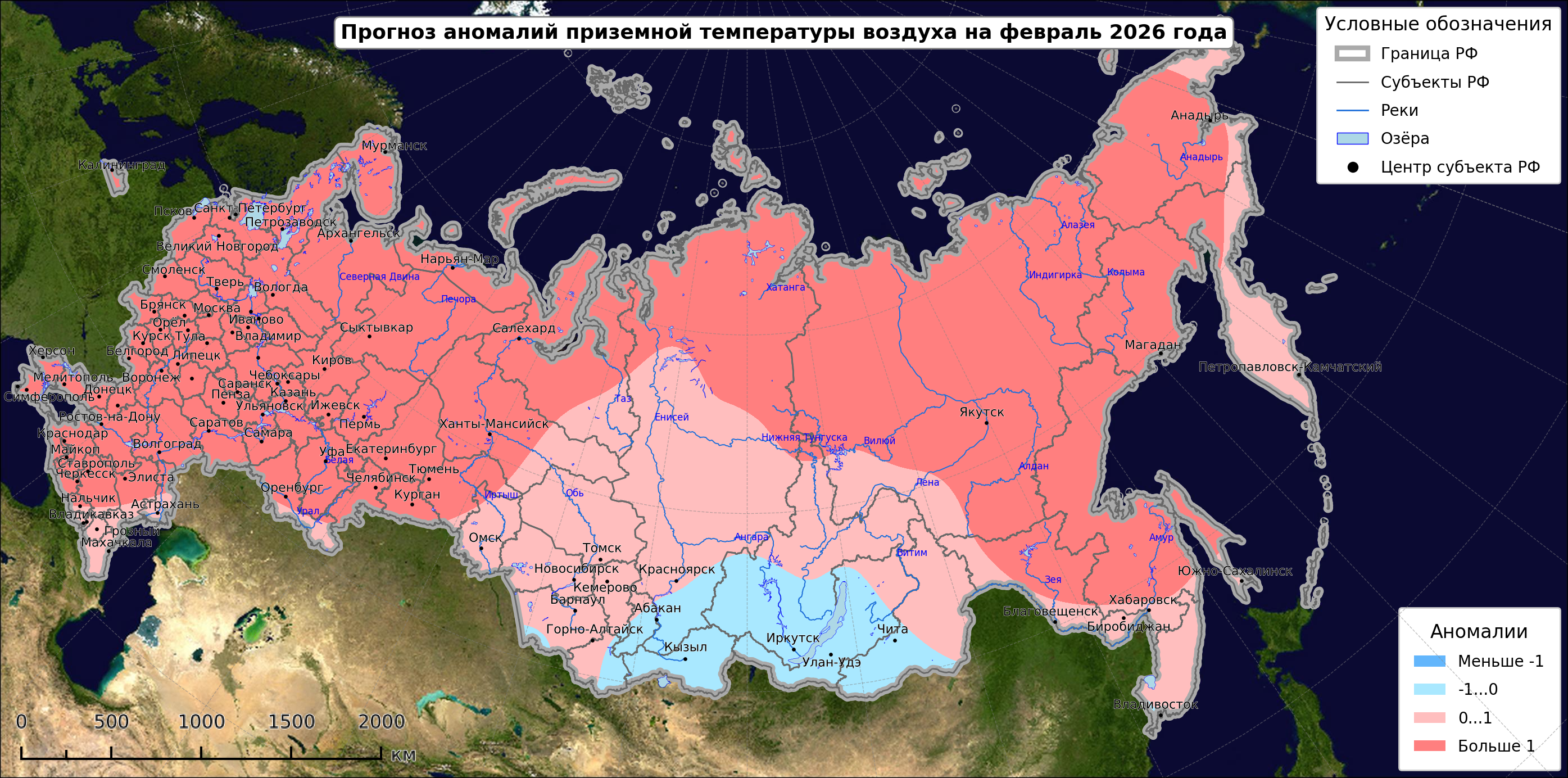 Гидрометцентр России представил прогноз аномалий температуры на февраль. Согласно данным, на большей части страны последний месяц зимы окажется теплее климатической нормы.