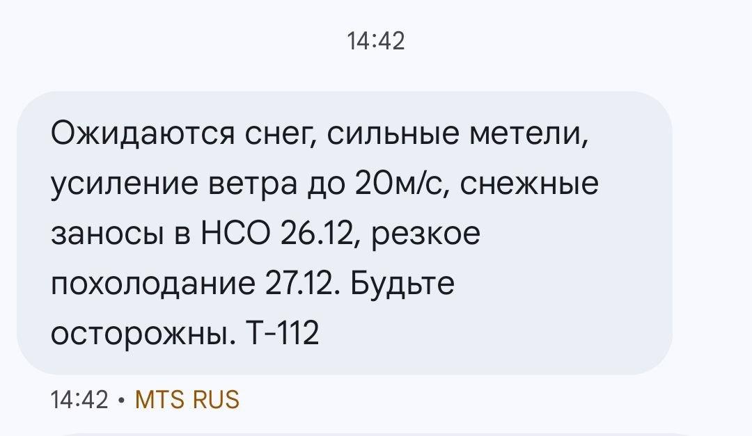 Спасатели МЧС распространили штормовое предупреждение для жителей Новосибирской области. В пятницу в регионе ожидаются сильные метели, а затем резкое снижение температуры.