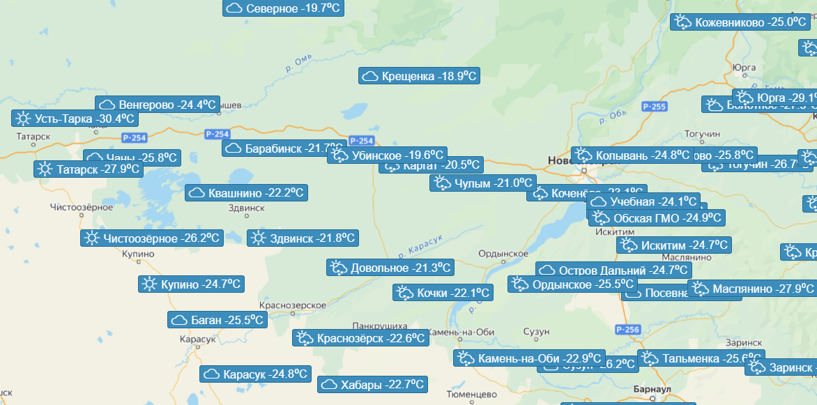 Согласно данным Западно-Сибирского метеоцентра, в ночь на 15 января в Усть-Тарке Новосибирской области была зарегистрирована температура минус 30,4 градуса.
